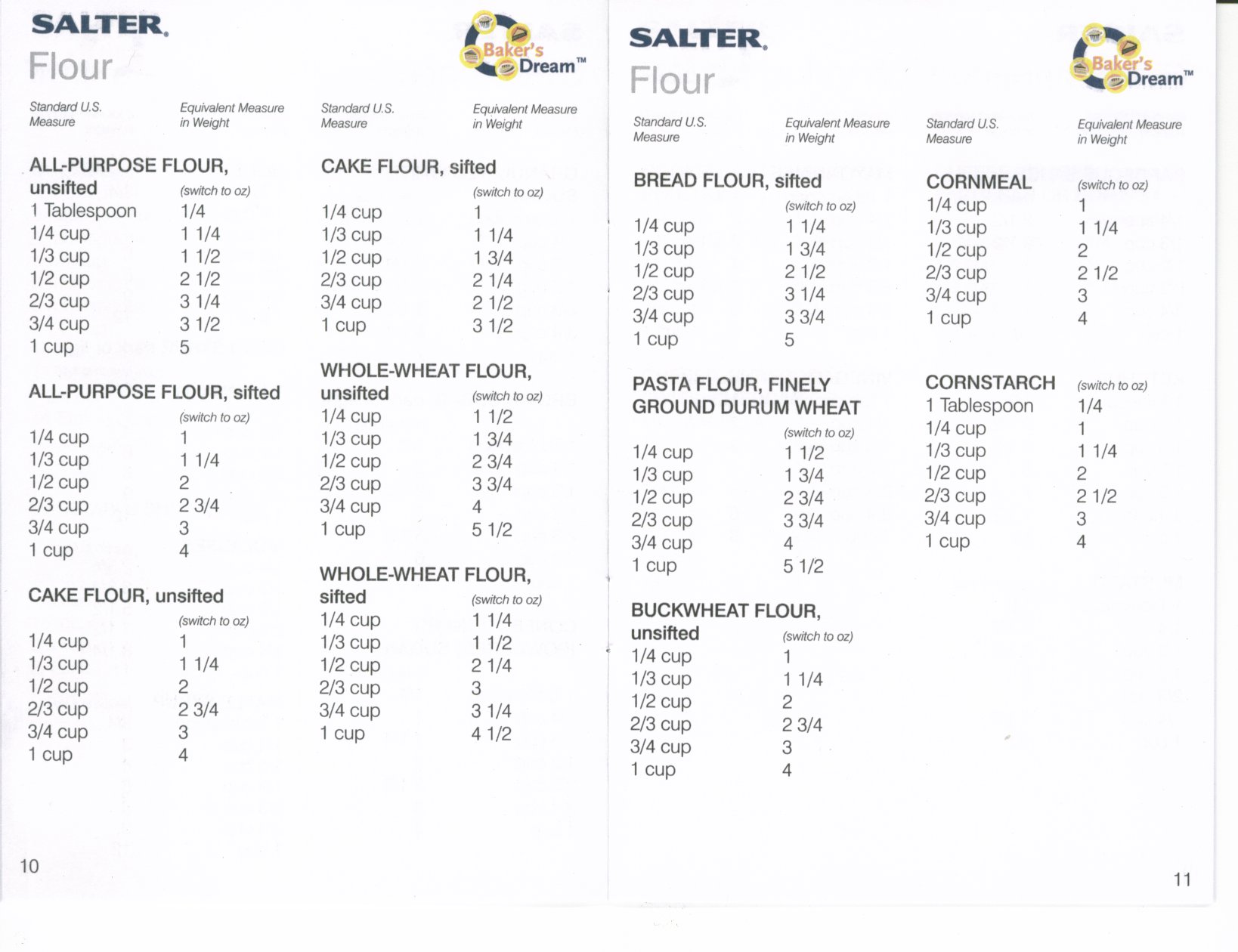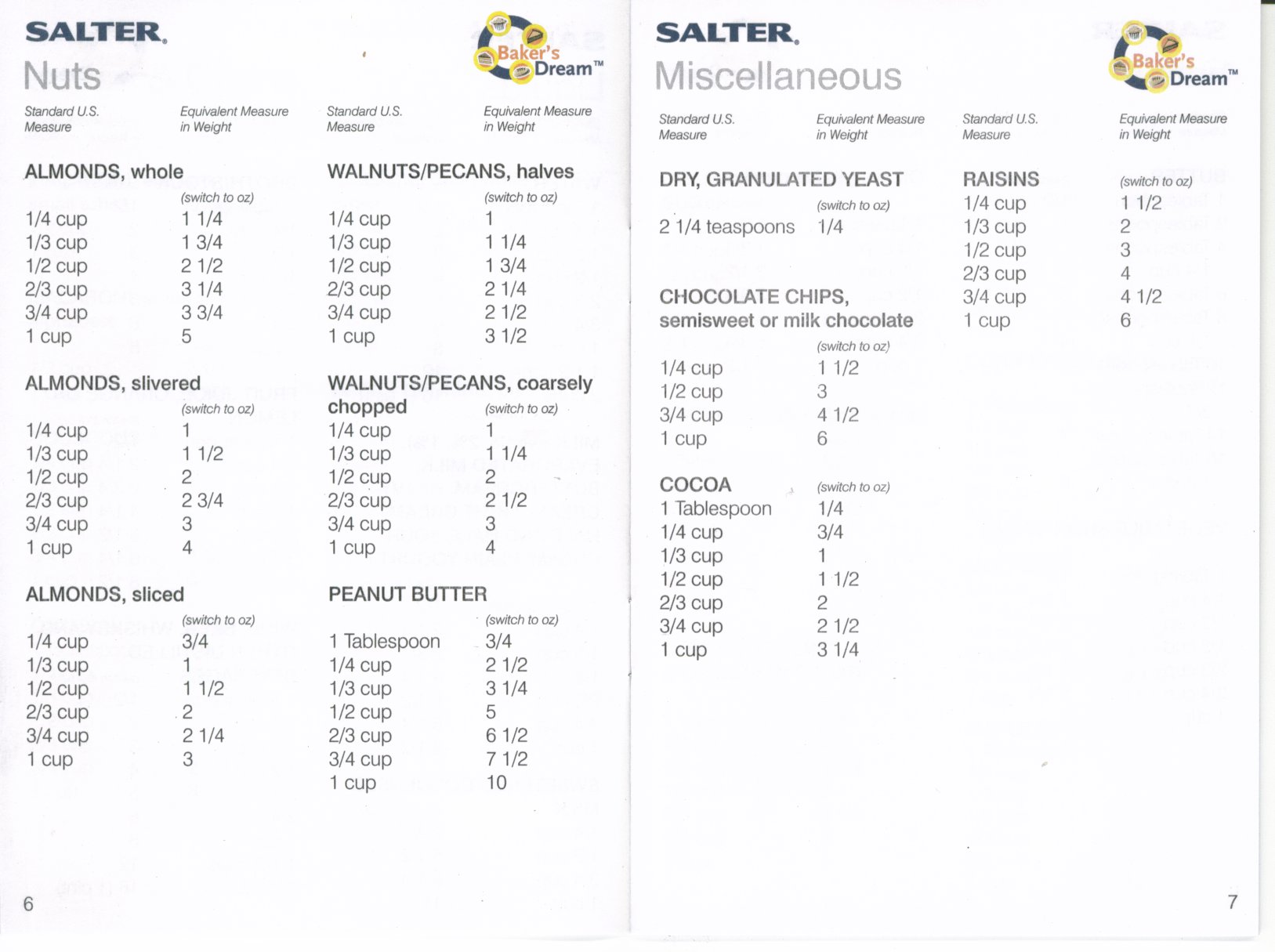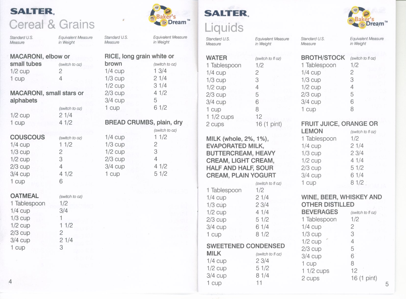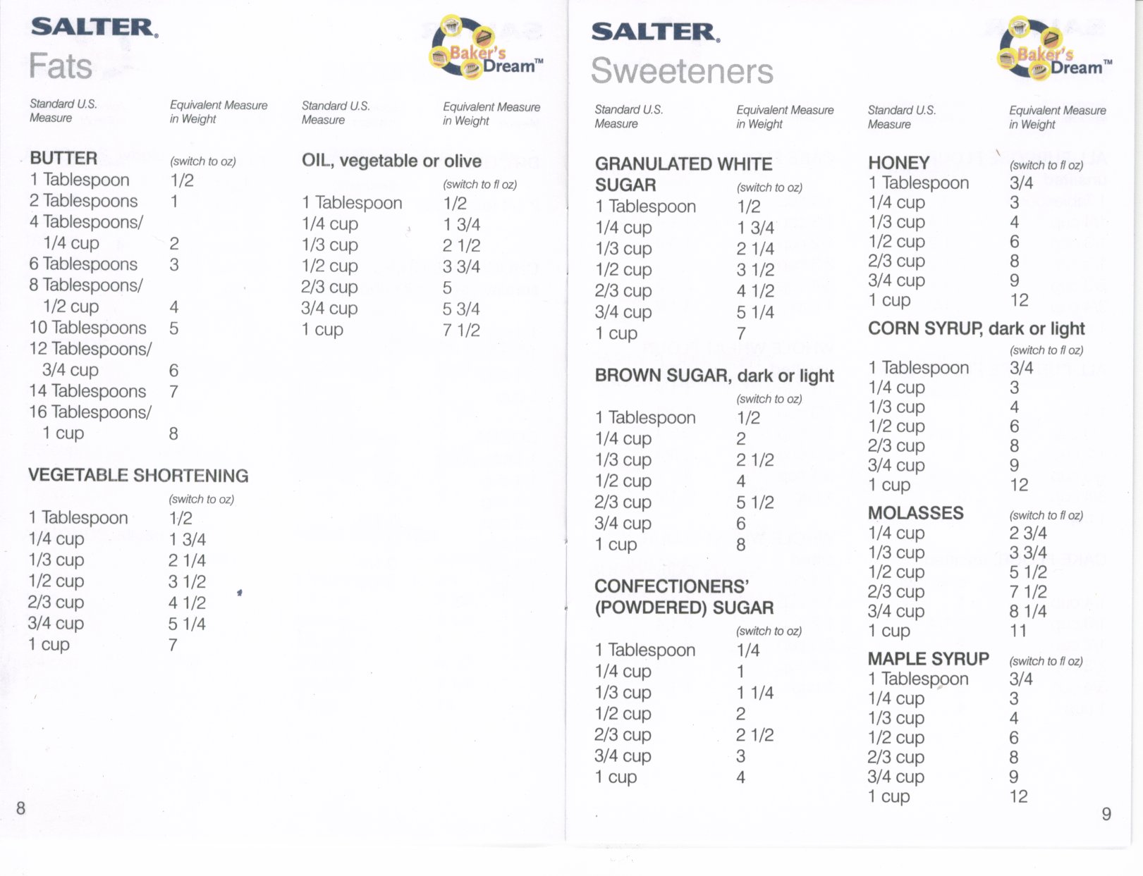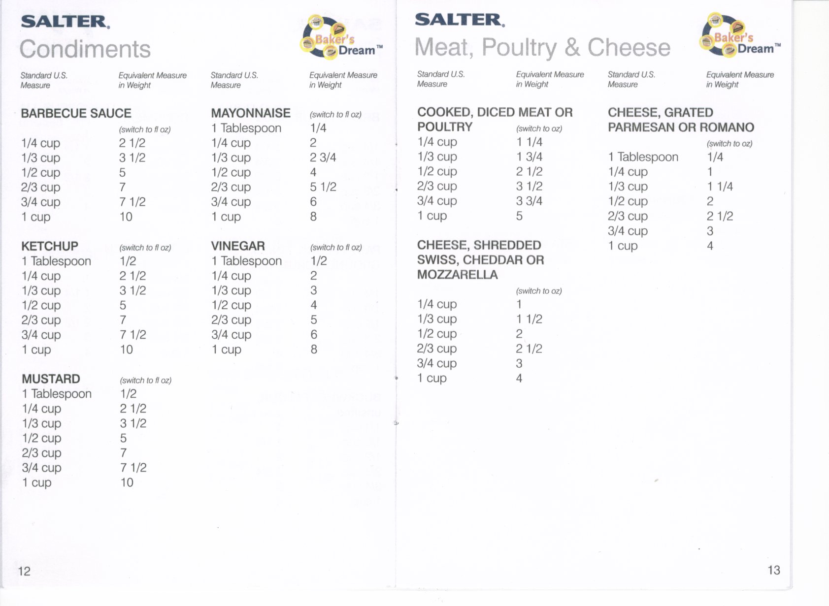 Cereal & Grains Cheese Liquids Condiments Fats Flour Meat & Poultry Miscellenous Nuts Sweeteners Vegetables Measurement Equivalents